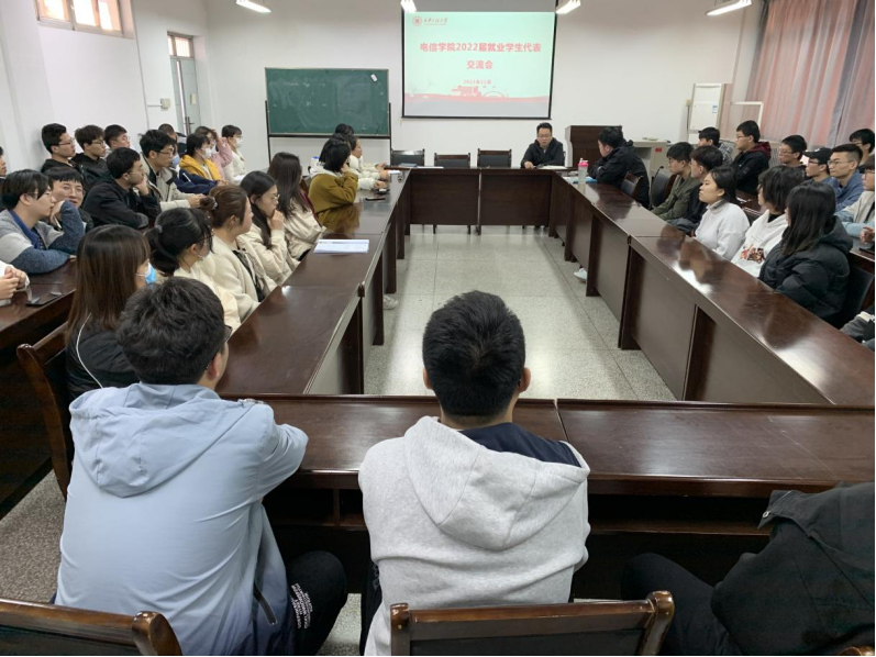 11月22日,9999js金沙老品牌在临潼校区电信楼419会议室召开2022届毕业生就业工作动员会。9999js金沙老品牌党委副书记刘许、毕业班辅导员周梦宇及2022届部分未就业毕业生参加会议。会议由学院就业工作辅导员黄木委主持。